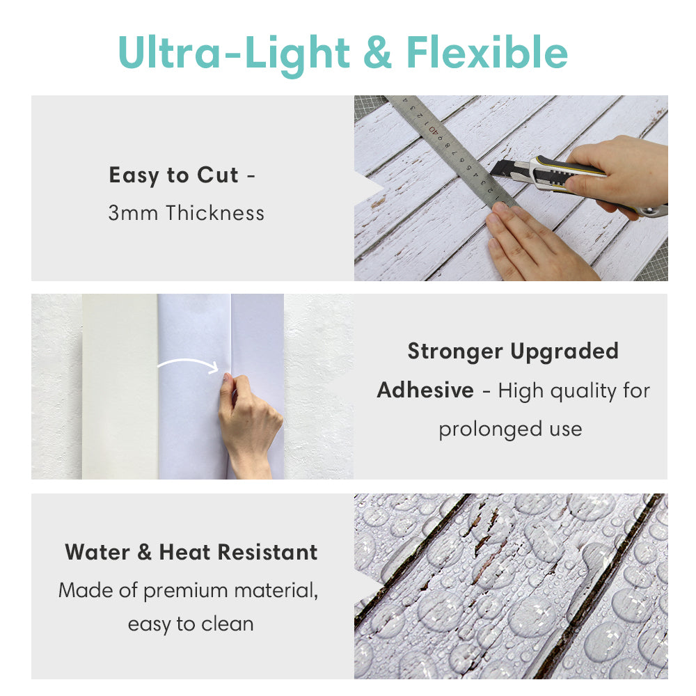 • Stunning 3D Embossed Texture: Realistic 3D surfaces perfectly simulate various real decorative tiles and are lightweight and flexible.