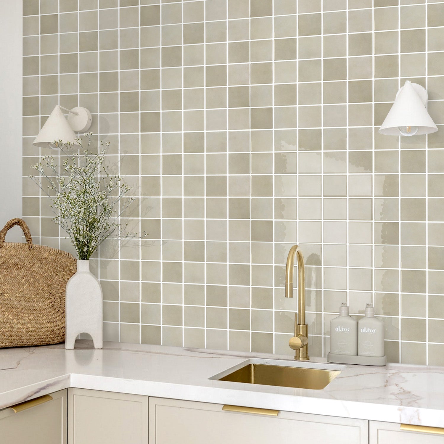 Greige Square Peel and Stick Backsplash Tile - Thicker Design