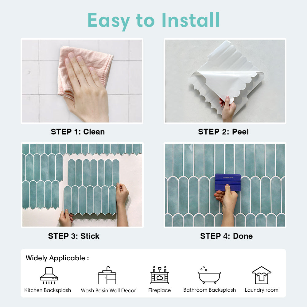 • Waterproof & Heat-Resistant: Withstanding water and heat-resistance, it's ideal for kitchen and bathroom backsplashes.
