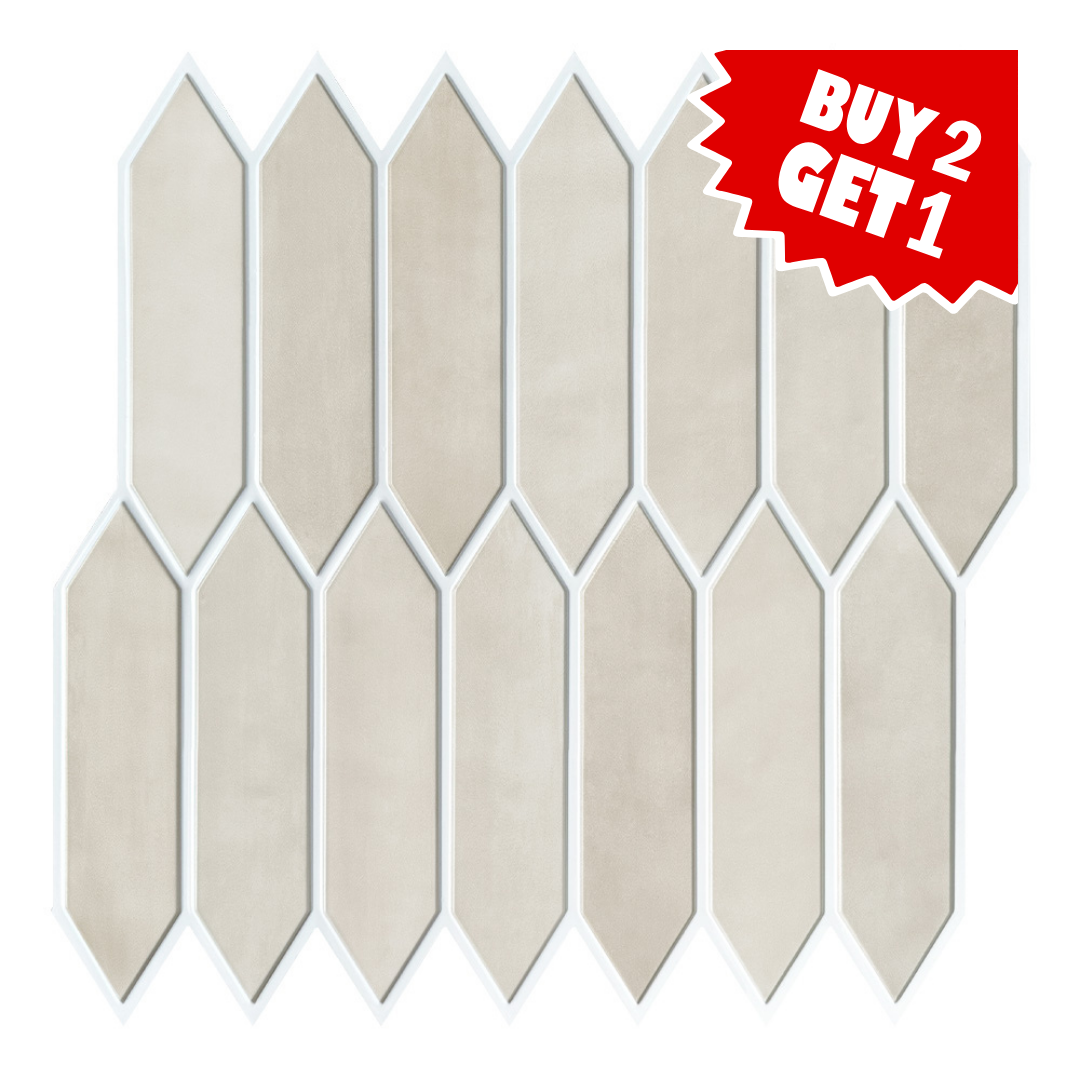3D Earth Tones Vintage Elongated Hexagon Peel and Stick Wall Tile