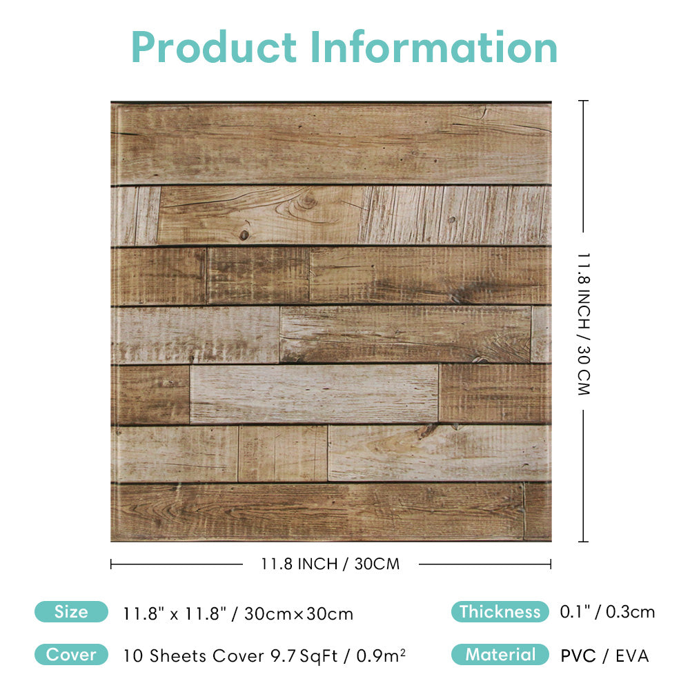 3D Rustic Brown Wood Peel and Stick Wall Tile