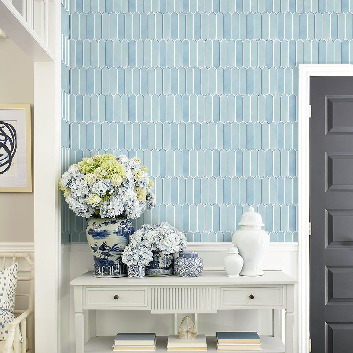 3D Sky Blue Fish Scale Peel and Stick Wall Tile add a touch of modern glamour to your home! This stunning fish scale wall panel are just the elegant details you need to complete any interior design.