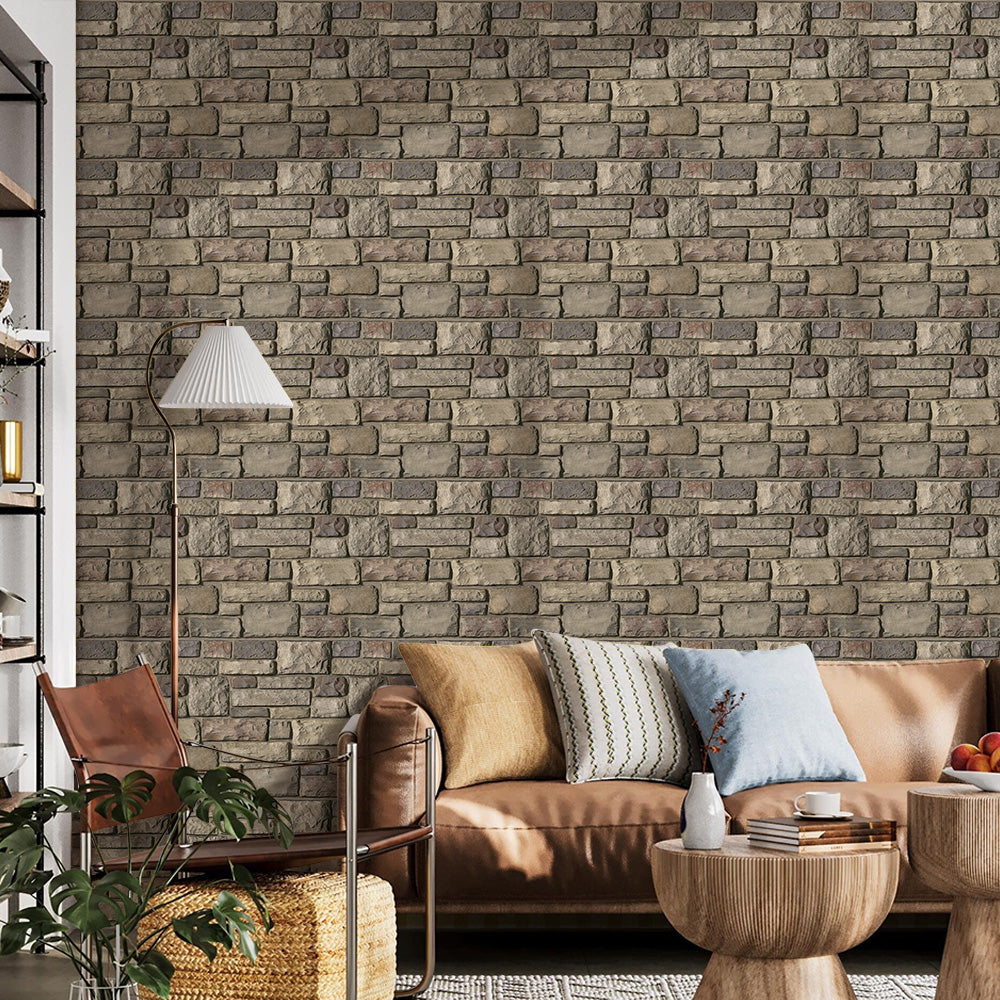 3D-Wandfliese aus rustikalem braunem Stein zum Abziehen und Aufkleben