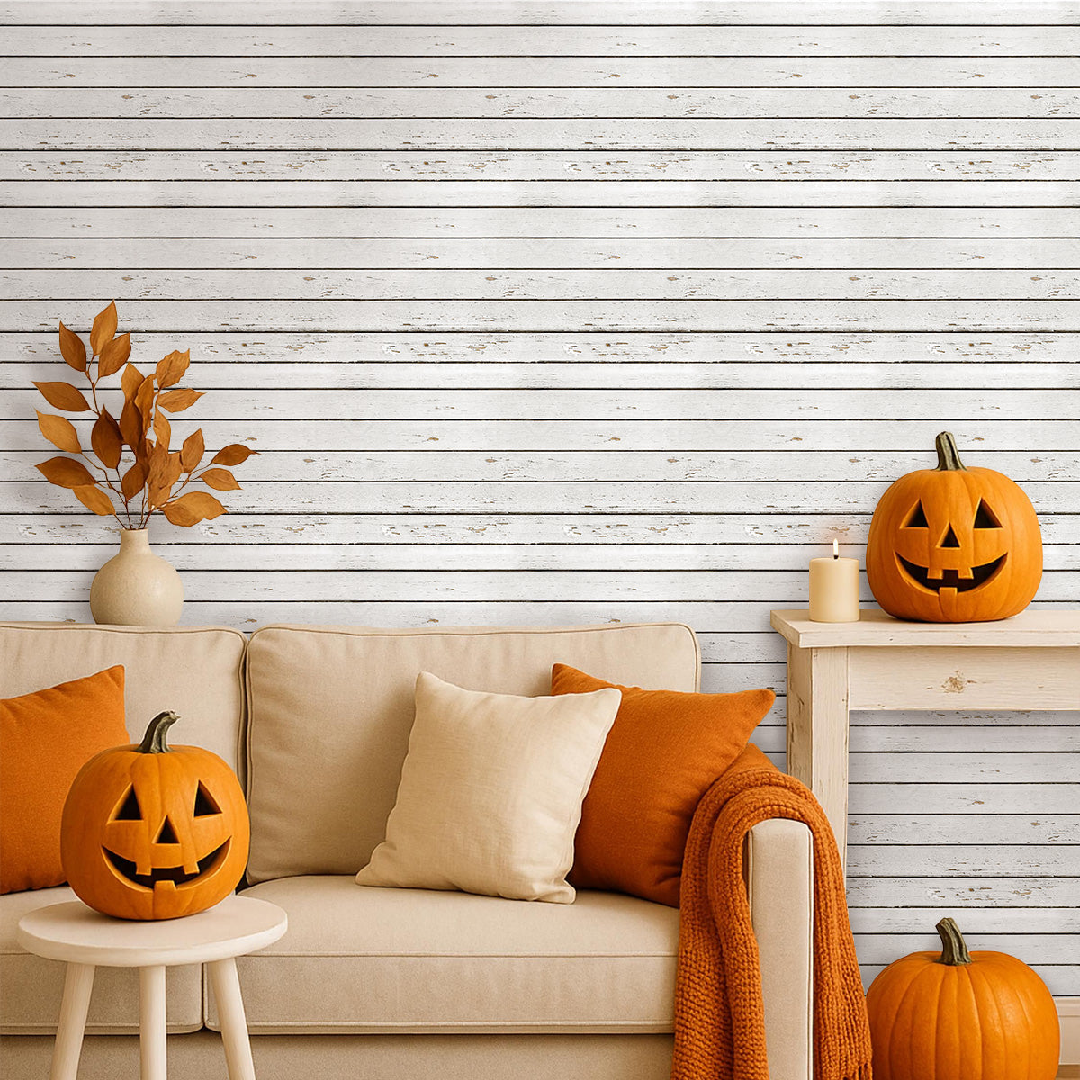 3D White Wood Grain Peel and Stick Wall Tile