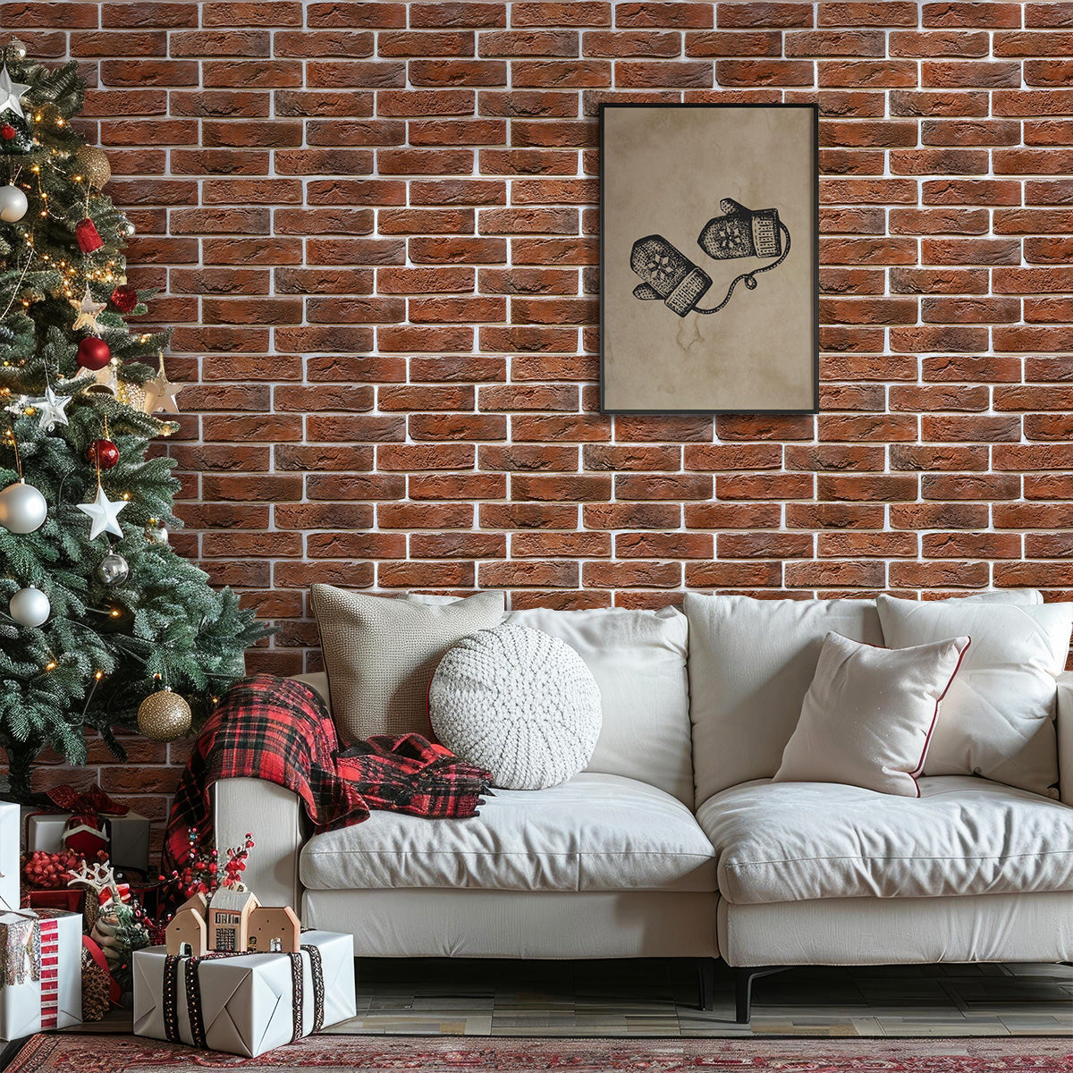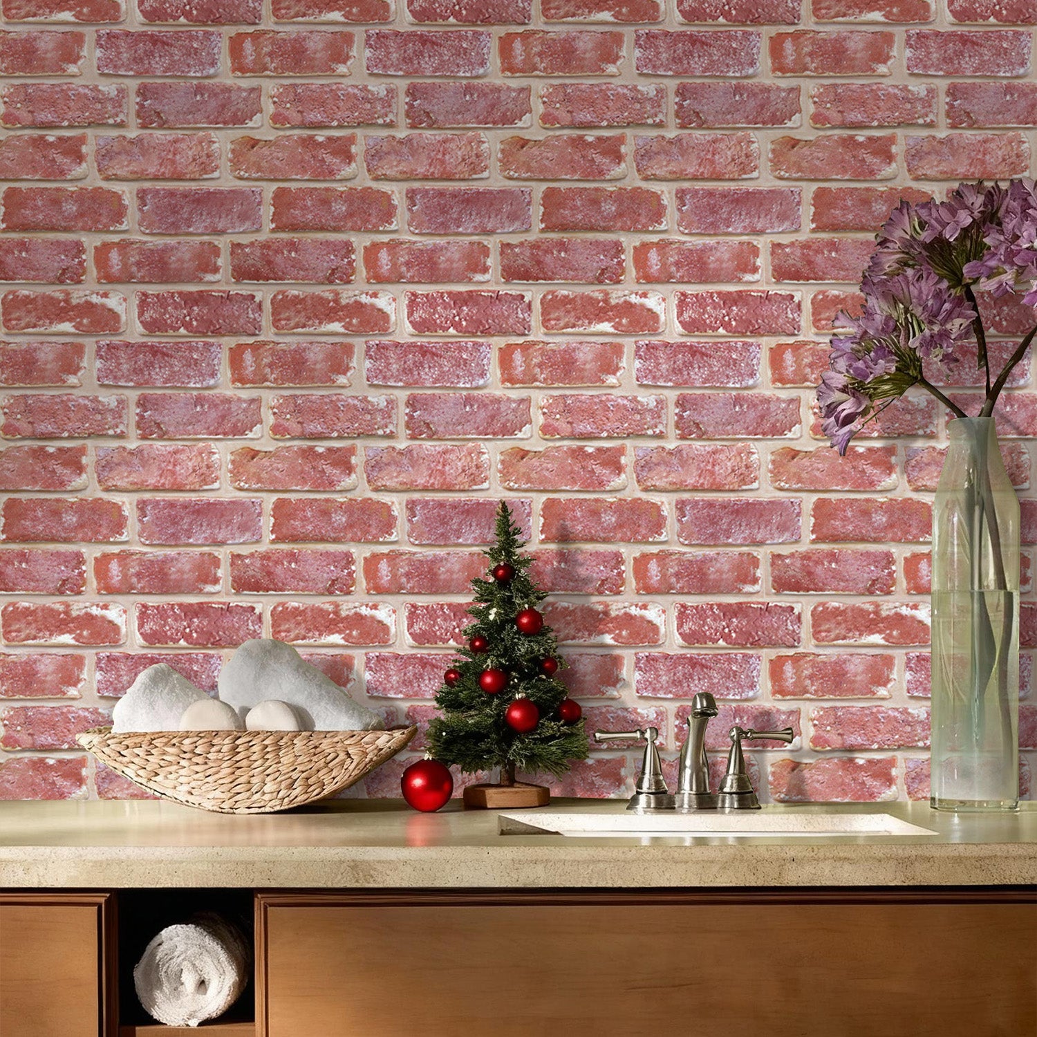 3D Red Brick Wall Panels Peel and Stick -Large Size
