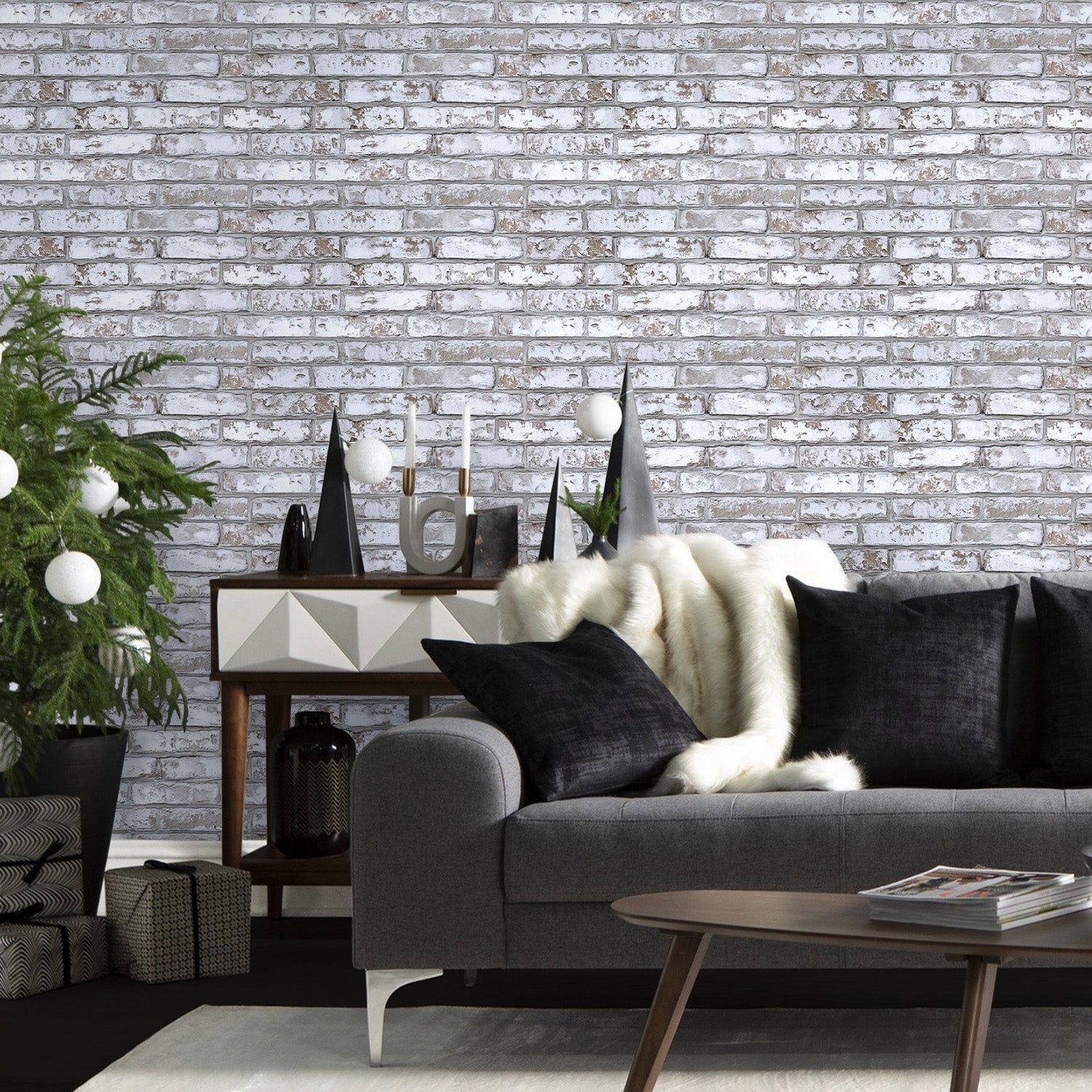 3D Rustic Whitewash Brick Wall Panels Peel and Stick -Large Size