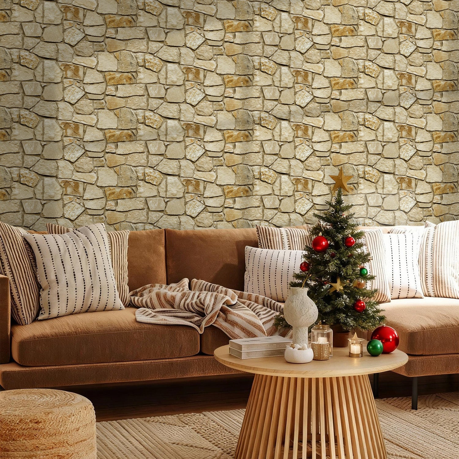 3D Brown Fieldstone Wall Panels Peel and Stick -Large Size