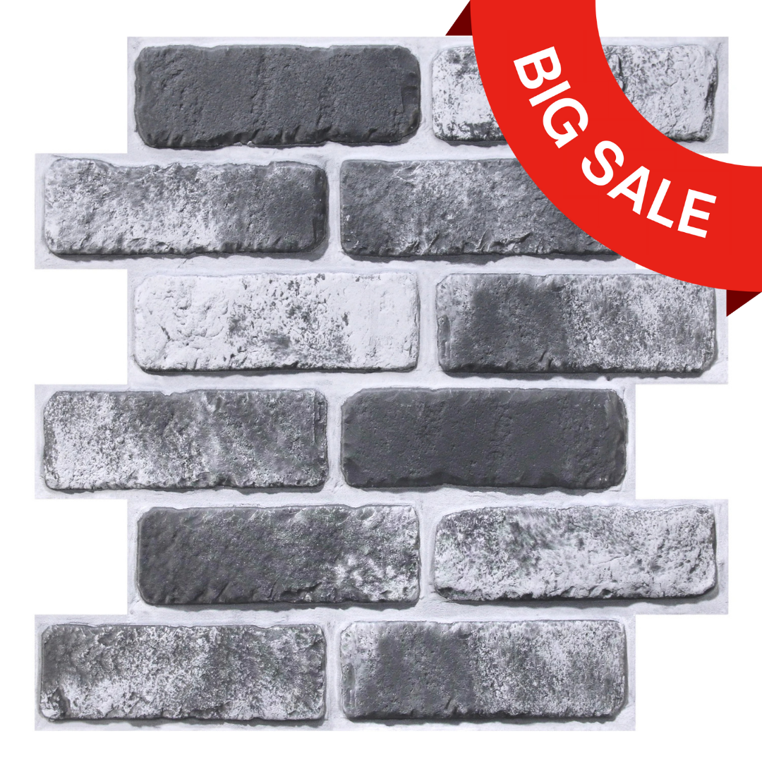 3D-Wandfliese, grau/schwarz, weiß getüncht, Ziegelstein, zum Abziehen und Aufkleben