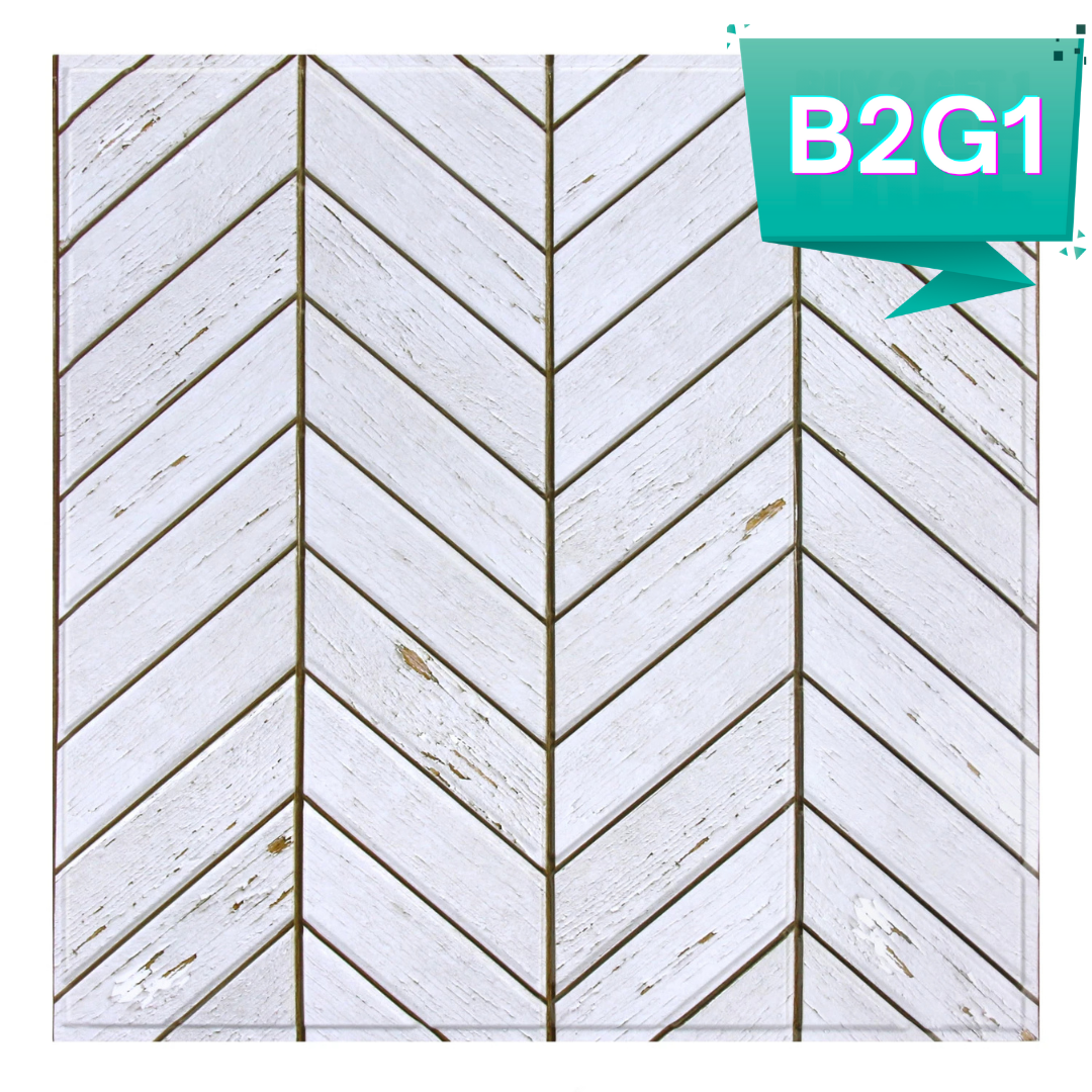 3D-Wandfliese aus weißem Holz im Fischgrätenmuster, zum Abziehen und Aufkleben