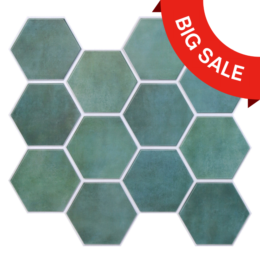3D Patina Grüne Sechseck-Wandfliese zum Abziehen und Aufkleben