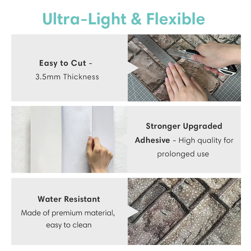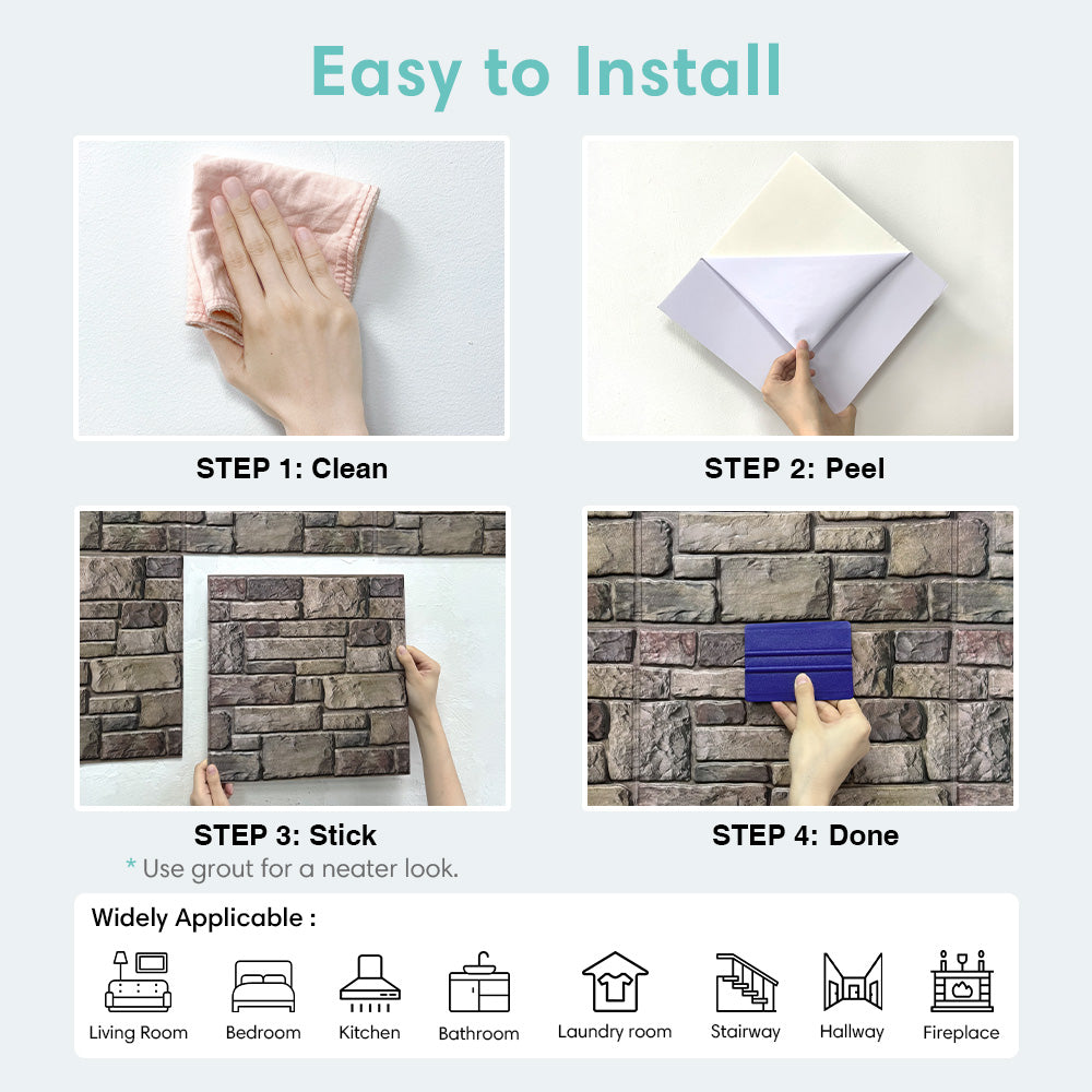 Die 3D-Steinfliesen von Commomy zum Abziehen und Aufkleben sind die ideale Wahl für Ihre Innenwanddekoration und verleihen Ihnen einen völlig neuen Look. Sie lassen sich in wenigen Minuten selbst herstellen, ohne dass zusätzliche Arbeitskosten wie bei herkömmlichen Fliesen anfallen! Machen Sie sich bereit, sich in Ihre Wand zu verlieben! Shop Mehr Muster und Design von Commomy 3D-Wandfliesen zum Abziehen und Aufkleben .