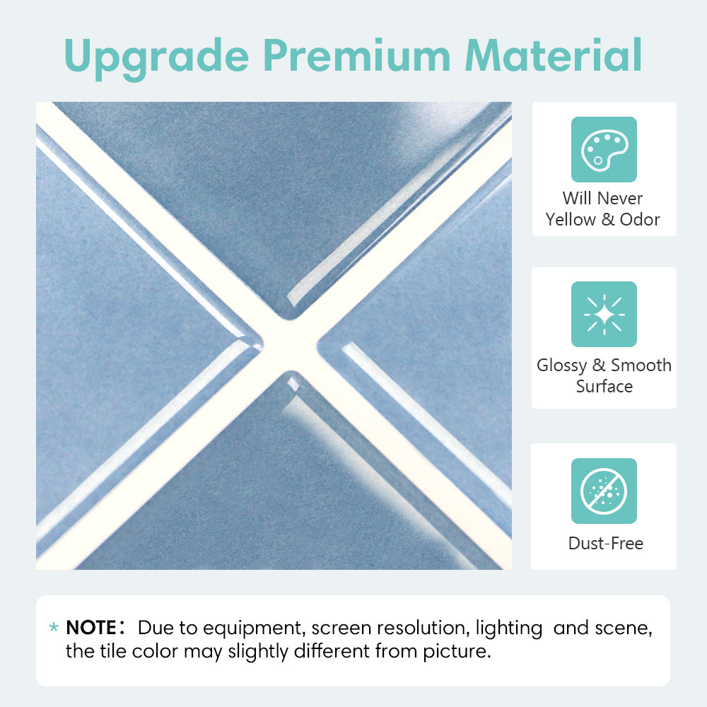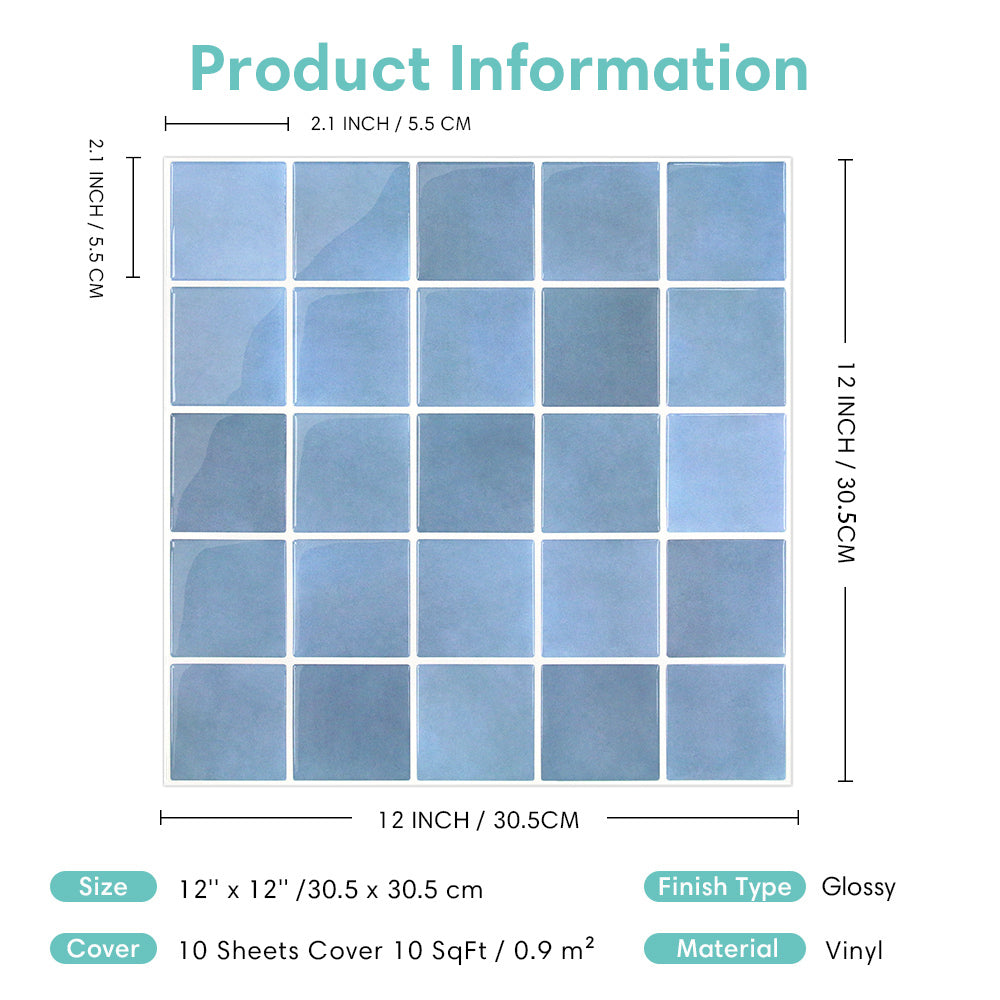 • Sky Blue Square Backsplash Tile is engineered to resemble high-end tile, boasting a realistic 3D texture.