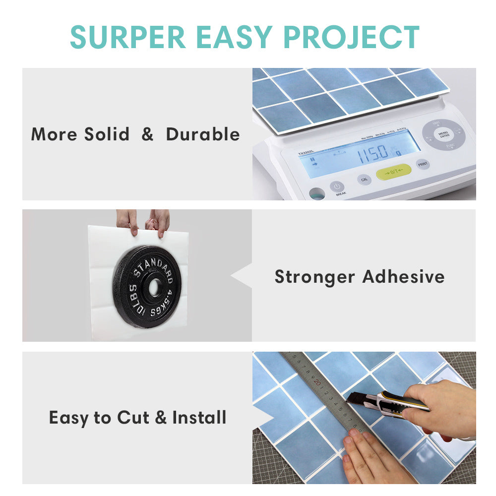 • Waterproof & Heat-Resistant: Withstanding water and heat-resistance, it's ideal for kitchen and bathroom backsplashes.