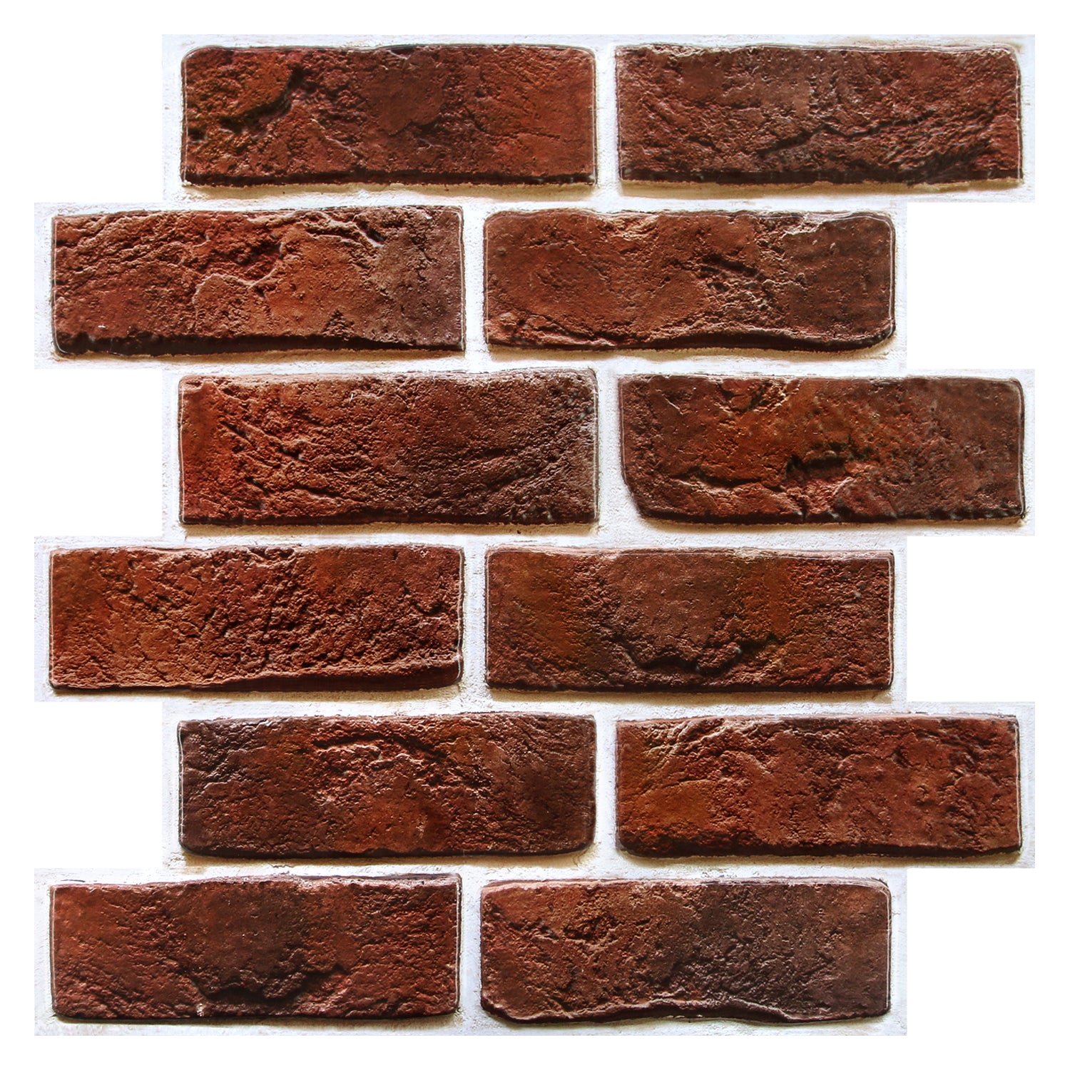 3D-Wandfliese aus rustikalem, tiefrotem Ziegelstein, zum Abziehen und Aufkleben