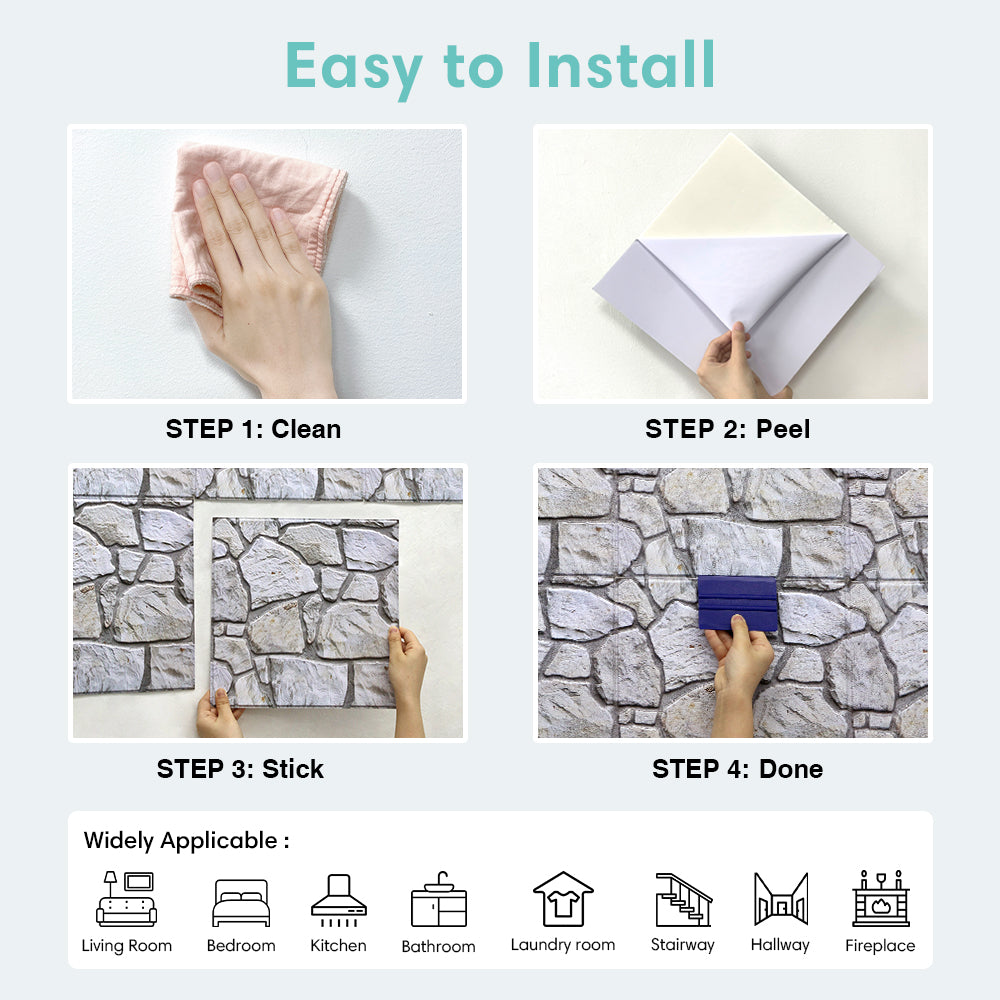 Commomy 3D peel and stick stone tiles are ideal choices for interior wall decor with a whole new look, DIY within minutes without adding more labor costs like traditional tiles! Get ready to fall in love with your wall! Shop More pattern and design of Commomy 3D Peel and Stick Wall Tile.