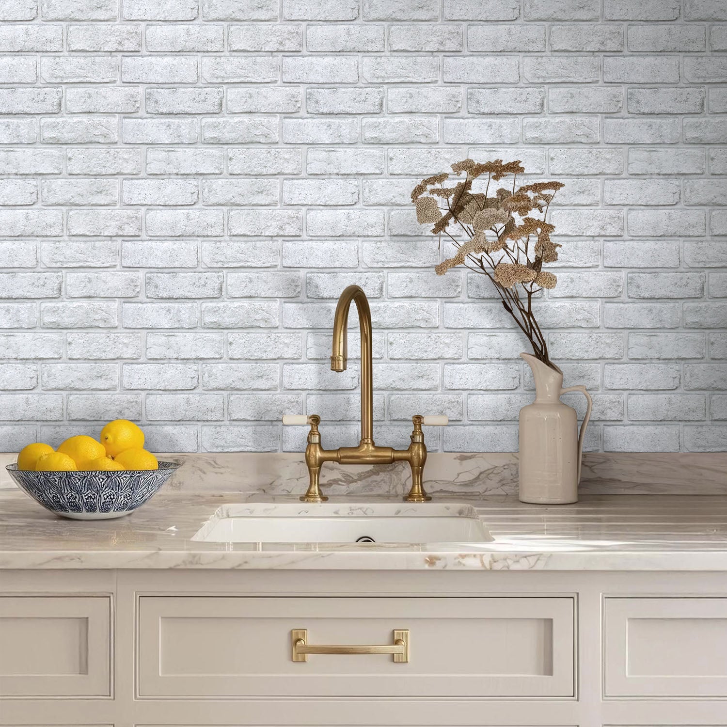 Immerse yourself in the tranquil harmony of 3D White and Gray Brick Peel and Stick Wall Tile, perfect as a refined brick backsplash or feature wall. Designed to evoke sun-bleached Mediterranean villas, these tiles feature softly blended veins of alabaster and dove gray across a dimensional surface, crafting a sophisticated backdrop for light-filled interiors. The realistic texture replicates weathered limestone with gentle imperfections, while the waterproof, scratch-resistant material guarantees effortless maintenance. Ideal for bathrooms, home offices, or open-plan living areas, their matte finish diffuses light to enhance calming spaciousness.