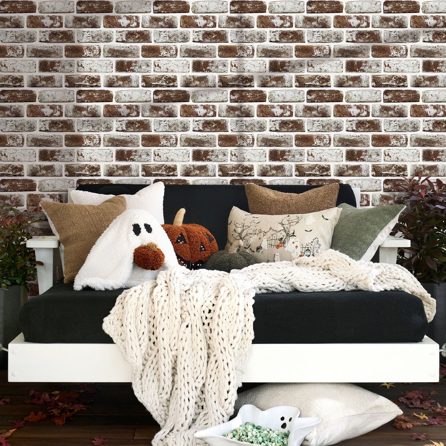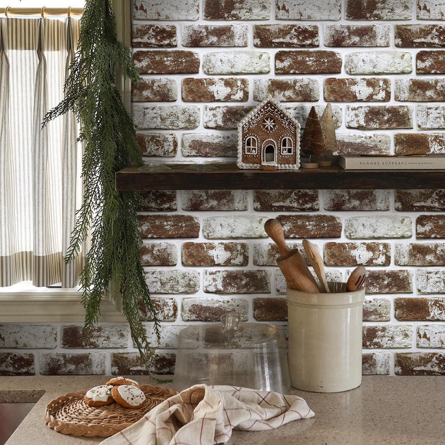 Azulejo de pared despegable y adherible de ladrillo blanqueado en color marrón café 3D