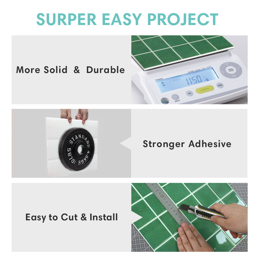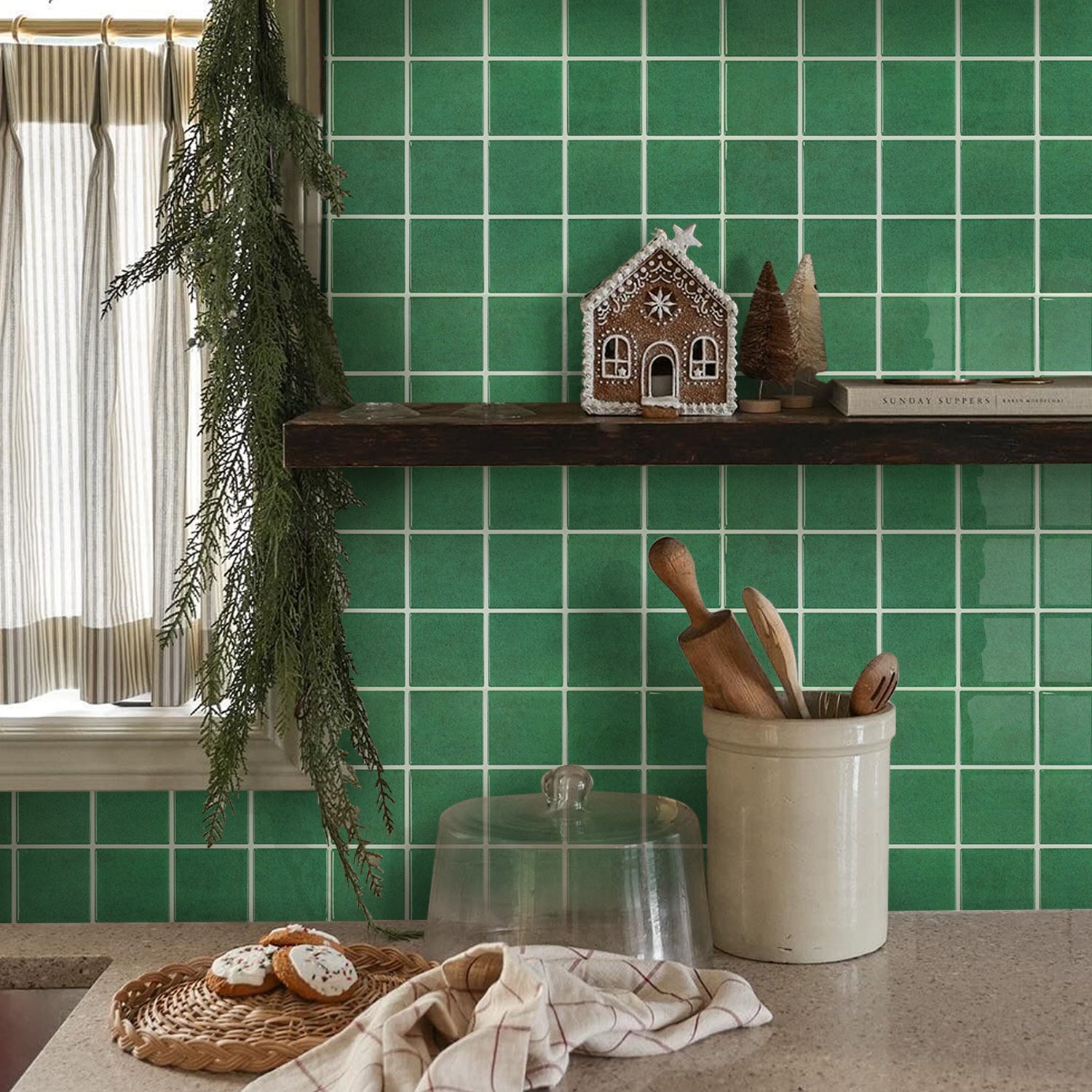 Green Square Peel and Stick Backsplash Tile - Thicker Design