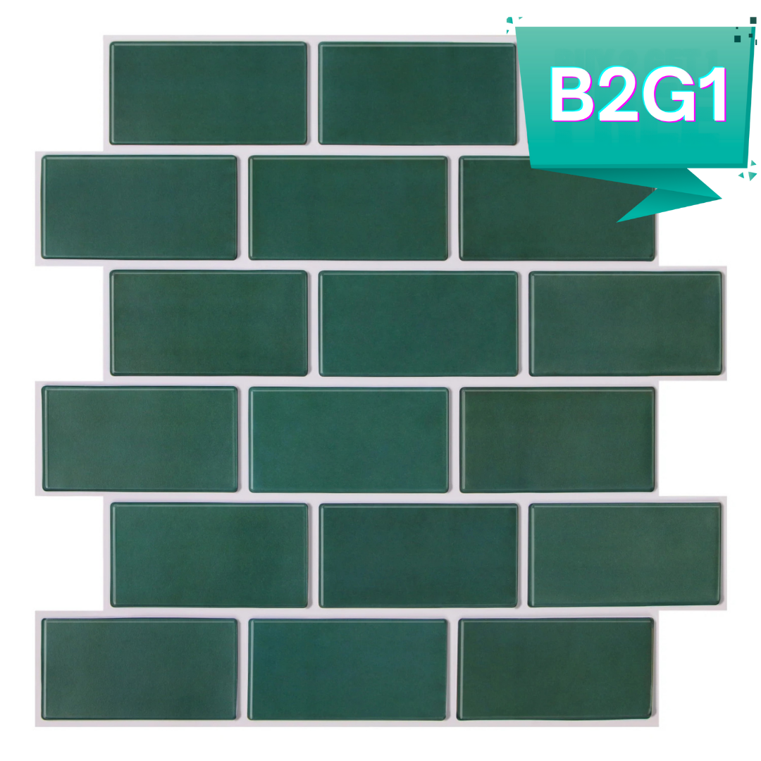 Infunda su espacio con el encanto fresco y vibrante de nuestro azulejo de pared pelable y adhesivo 3D Green Subway , un diseño moderno y dinámico para cualquier habitación.