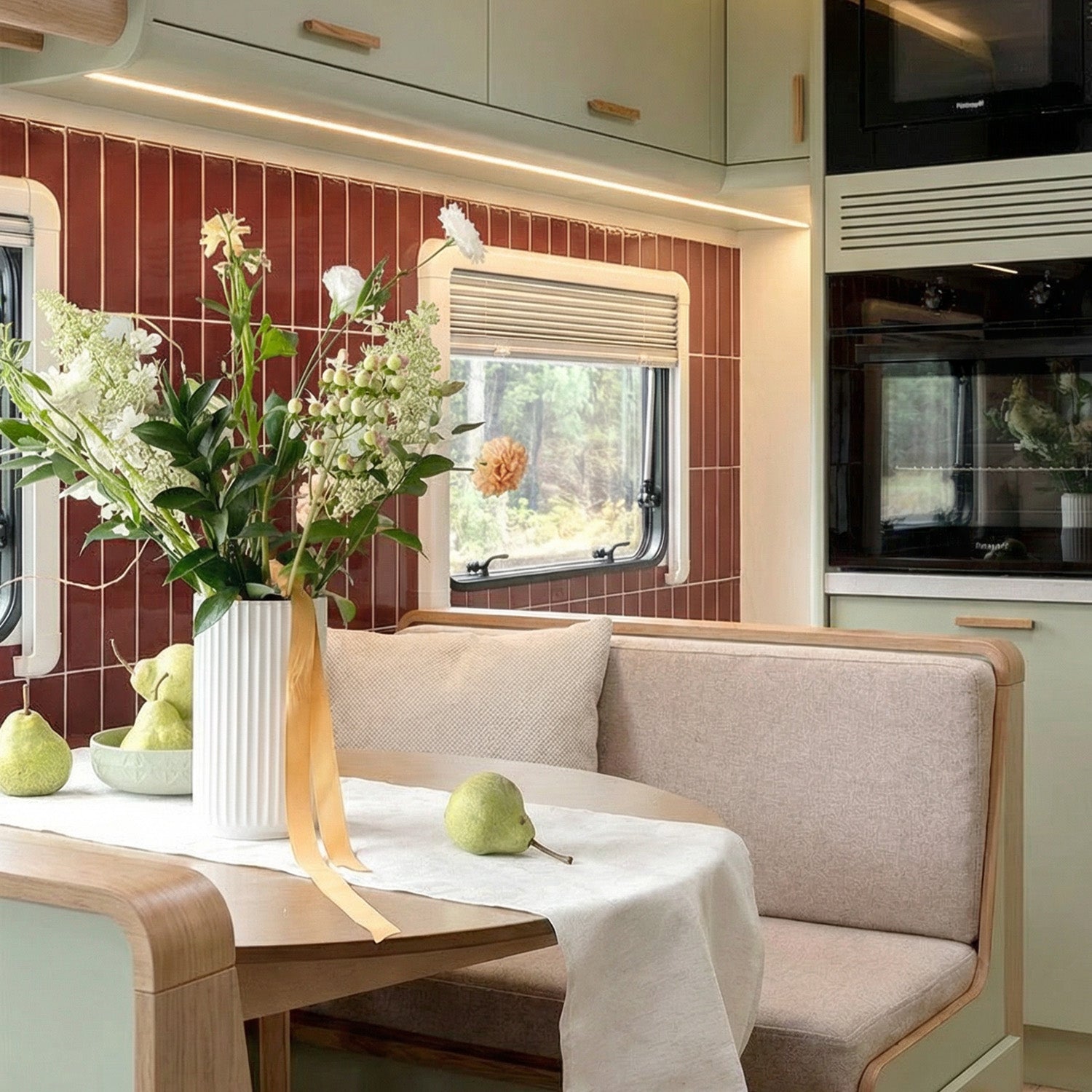 • Recommended Surface smooth ceramic tiles backsplash, smooth glass tiles backsplash, acrylic wall panel, pained gypsum, wall linoleum, stainless metal, mirror, laminate, wallpaper (if some corners are peeling, just peel them off and install tiles over them).