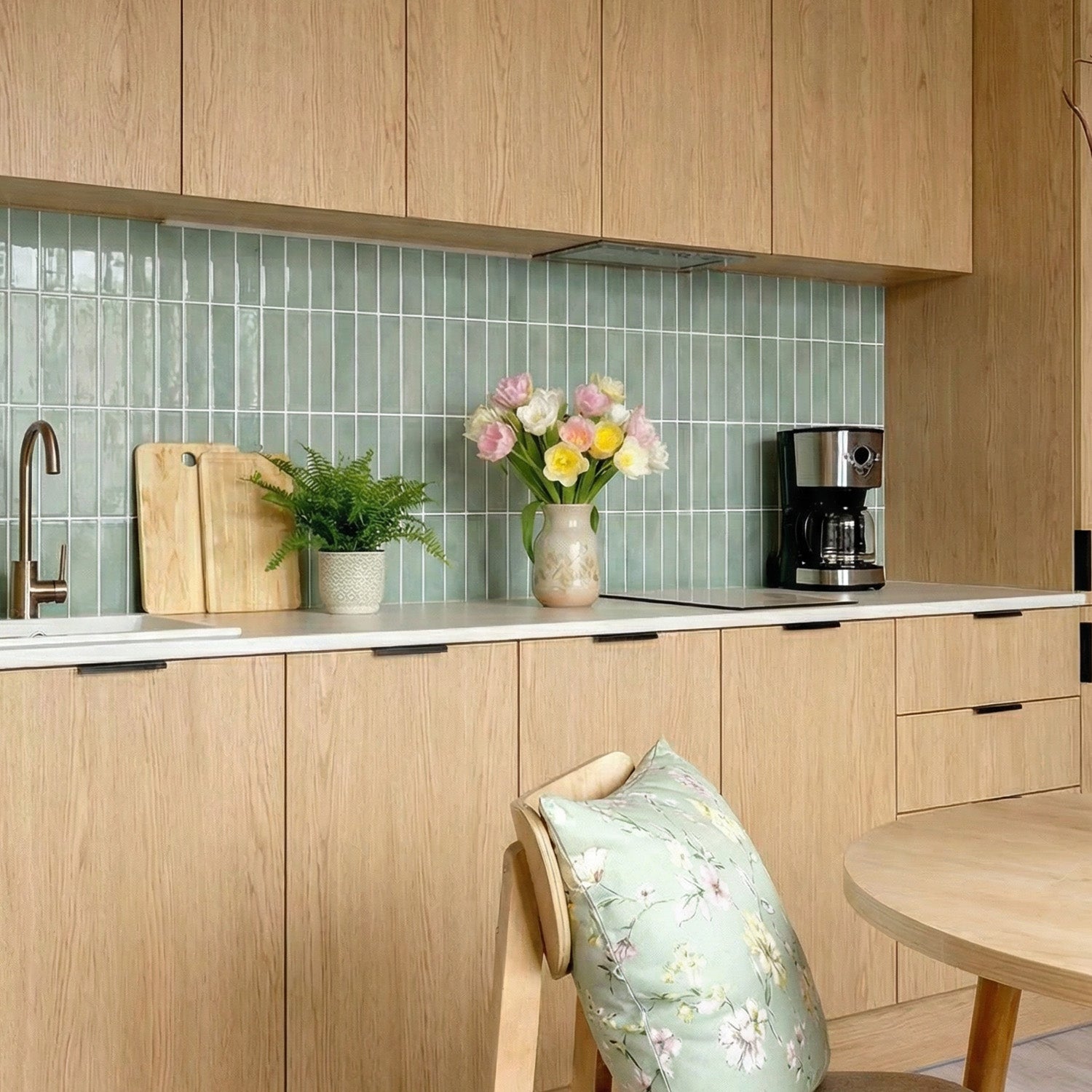 Refresh Your Space with Airy Elegance. The Sea Mist Green Linear Peel and Stick Backsplash Tile brings a gentle splash of color, inspired by coastal calm and natural tranquility.