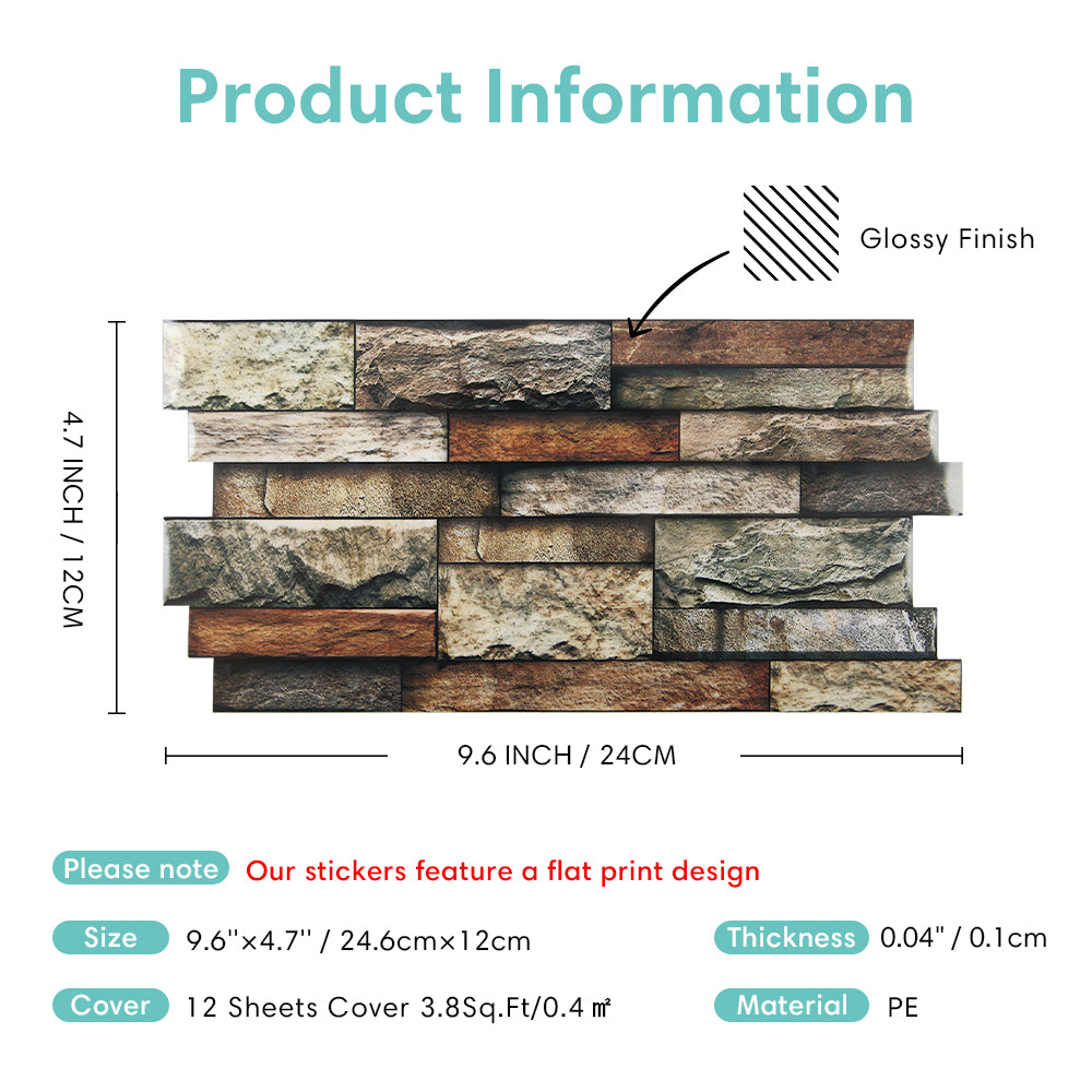 Embrace the rugged charm of our Retro Brick Stone Peel and Stick Tile Stickers! Designed to resist water, stains, and mold, these stickers combine lasting durability with a rustic brick and stone finish, offering the perfect blend of strength and style. Whether you're updating your kitchen, bathroom, or creating an accent wall, their easy installation and authentic texture make it simple to achieve a bold, timeless look. Redefine your space with the retro appeal of our Peel and Stick Tile Stickers, and enjoy a lasting transformation that captures classic, industrial character!